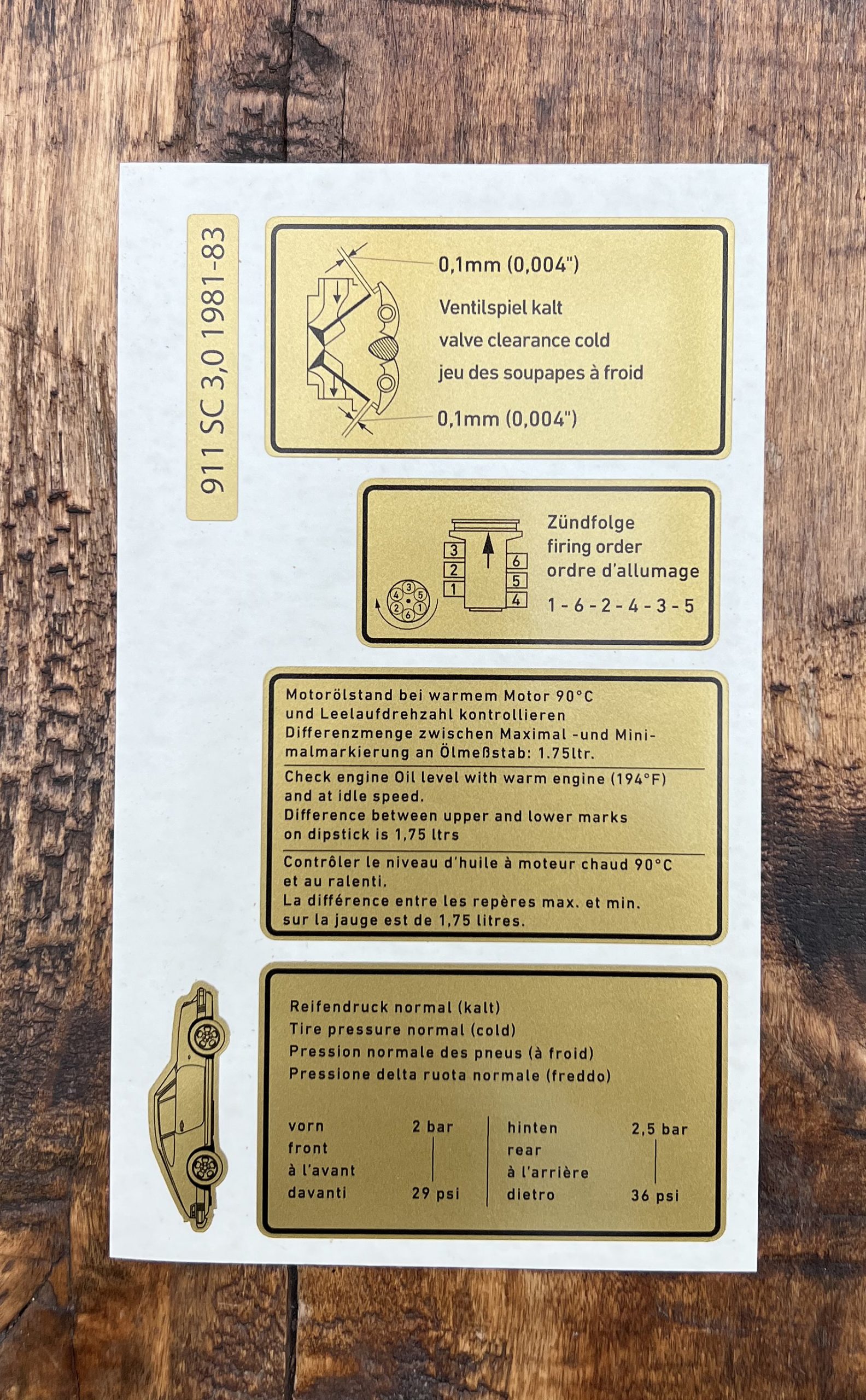 Porsche 911 Stickers – Type G – 911 SC 3.0 – 81-83 – rear cross member – engine